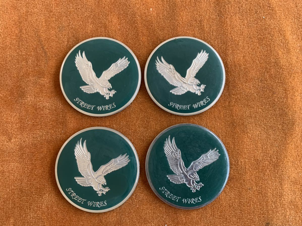 - ストリートワイヤーエンブレム4枚セット。グリーン ワイヤーホイールエンブレム ノックオフエンブレム デイトンインパラベルエア