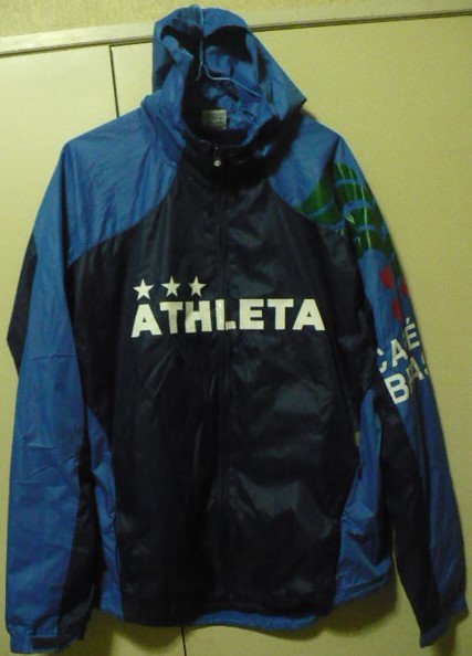 > 美品 ATHLETA(アスレタ製)フルジップジャケット(フード付き) O ネイビー×青 ウィンドブレーカー上のみ