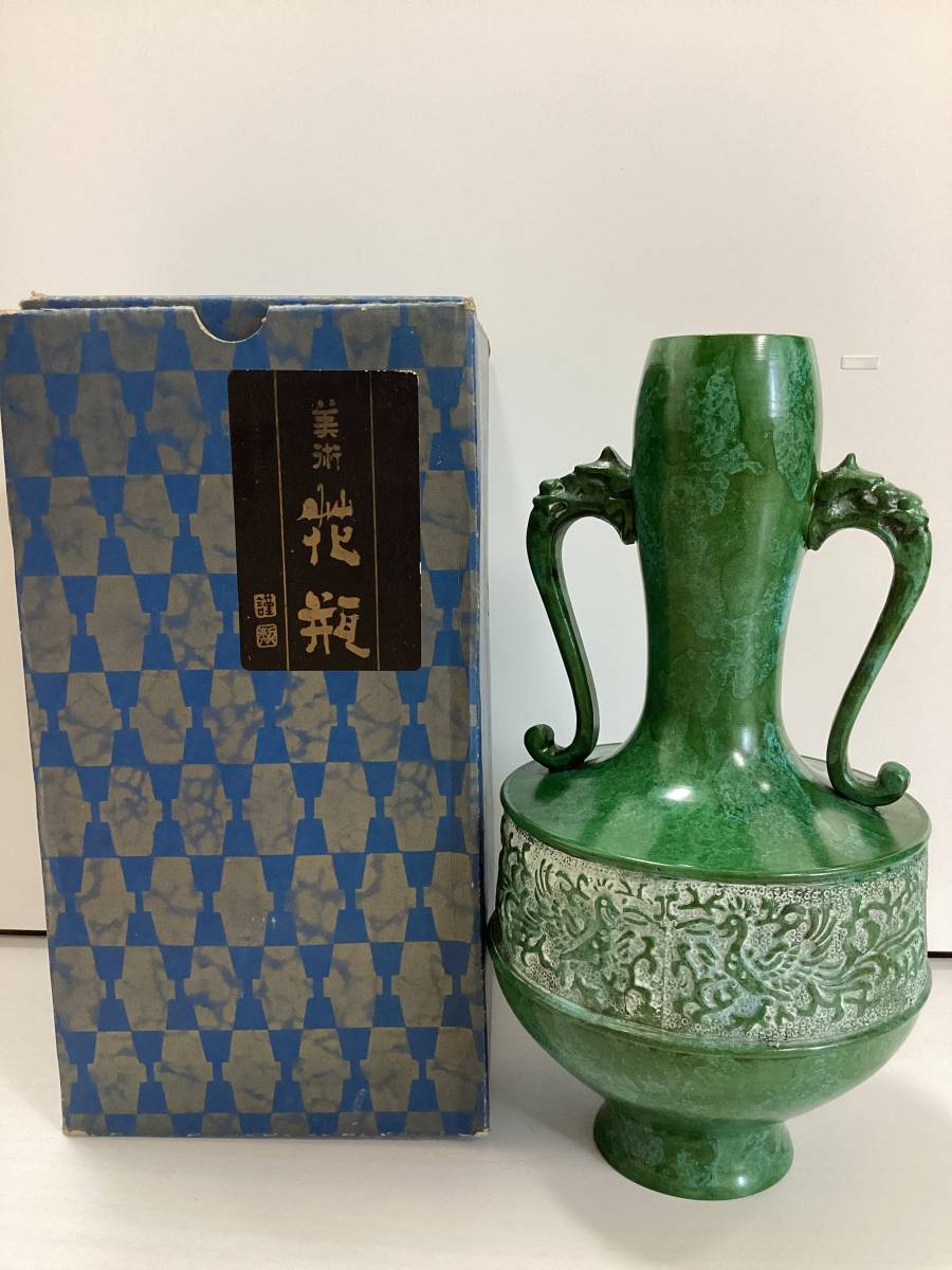 - 花瓶 高岡銅器 耳付き 花器 花入れ フラワーベース 伝統工芸品 在銘 K358
