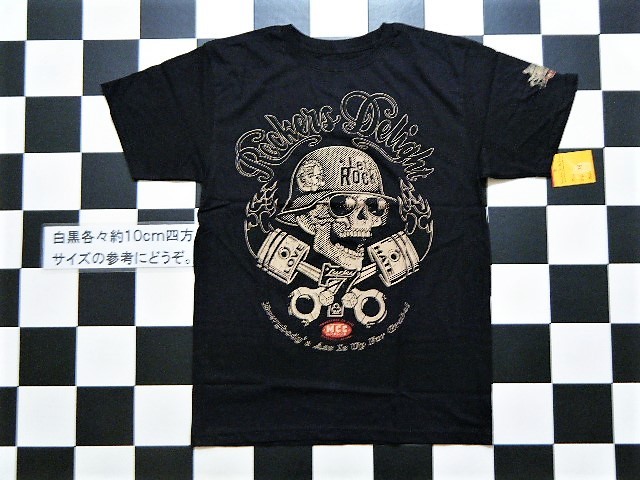 > OIL LEAK Rockers Delight 半袖 Tシャツ M 黒 れ2547 身幅約50cm バイカー スカル