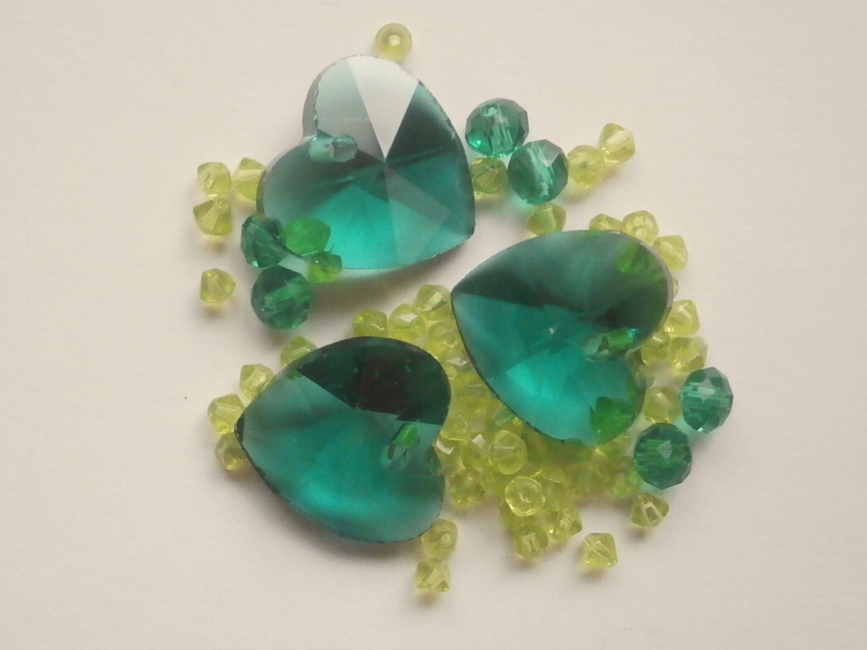 - ガラスビーズ★ハート★1つ穴★グリーン系★a