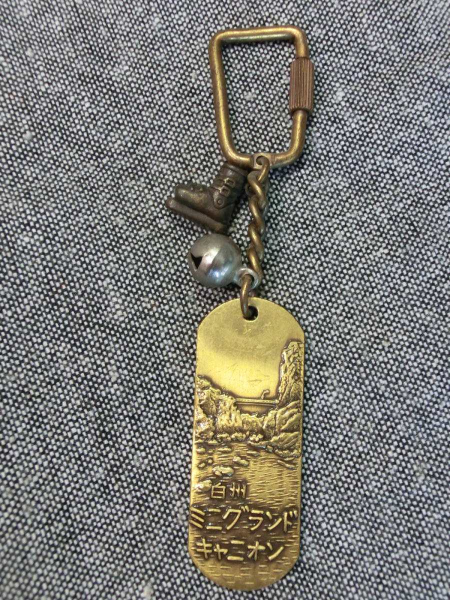 - 昭和レトロ キーホルダー 長野県 白州ミニグランドキャニオン ロード国界ドライブイン 鈴付き ブーツ付き お土産品 観光地 ご当地