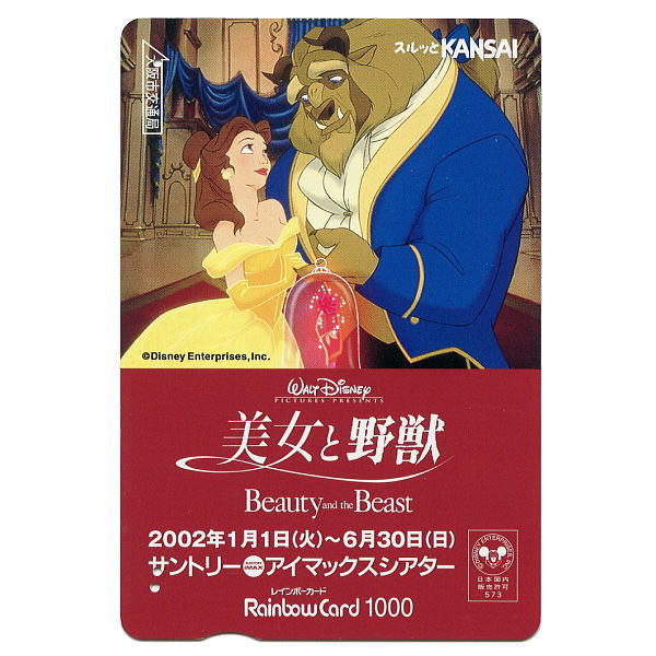 - ディズニー 美女と野獣 使用済みレインボーカード サントリーアイマックスシアター 大阪市交通局 スルッとKANSAI 2002年