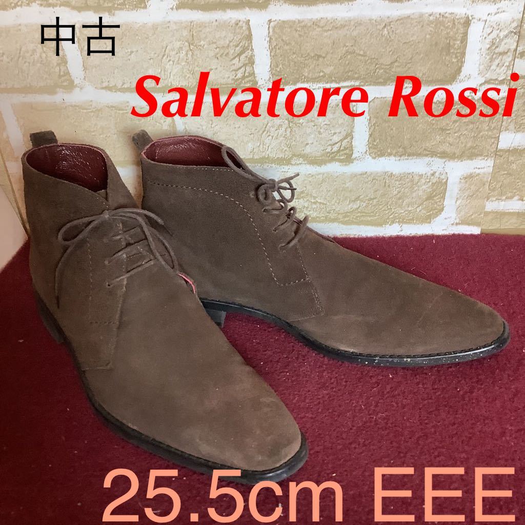 > 【売り切り!送料無料!】A-307 Salvatore Rossi!チャッカブーツ!25.5cm!ブラウン!おしゃれ!日本製!スタイリッシュ!カジュアル!中古!