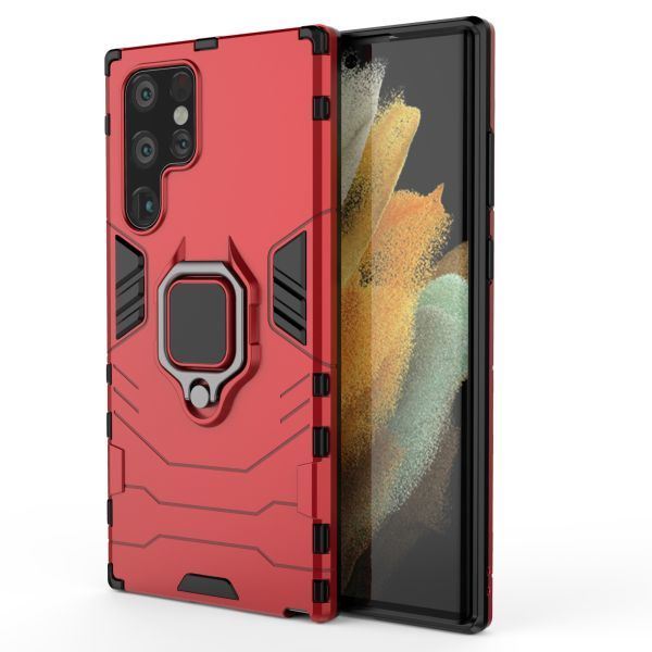 - T在庫処分 赤 Galaxy S22 Ultra 指リング付きケース SCG14 SC-52C 衝撃吸収 カバー ギャラクシー 保護 丈夫な耐衝撃 スタンド機能 サムセン