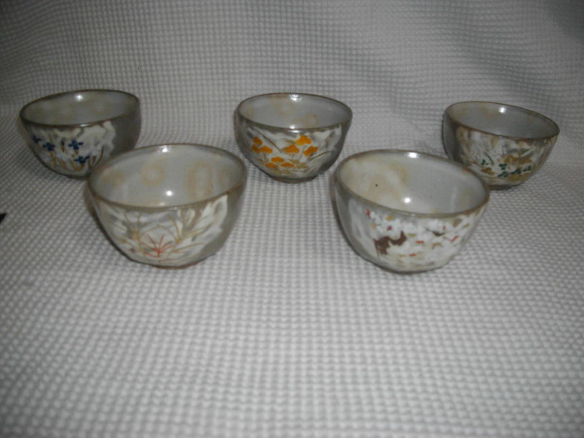 - 【たち吉】 深山・陶碗 湯呑 5客 ◆ 絵柄違い