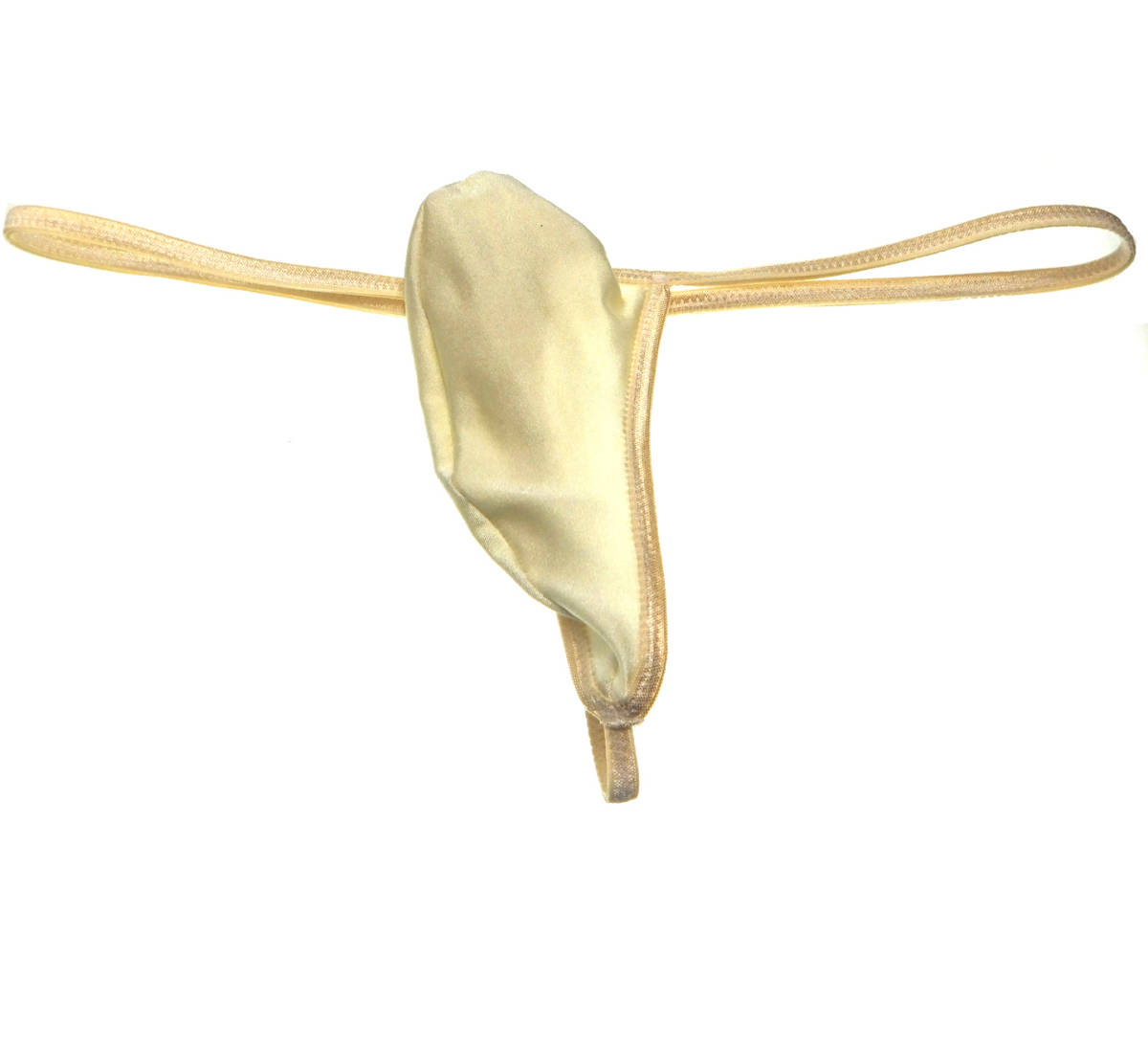 - 【新品】メンズとんがり上向き光沢ナイロン総ベージュGストリング