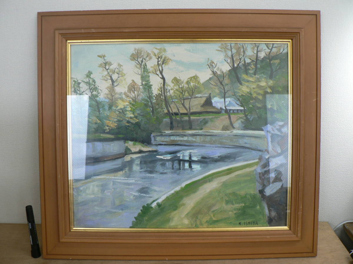 - 真作 油彩 額装 「忍野風景」 石田貢一 一水会 F10/アート 美術