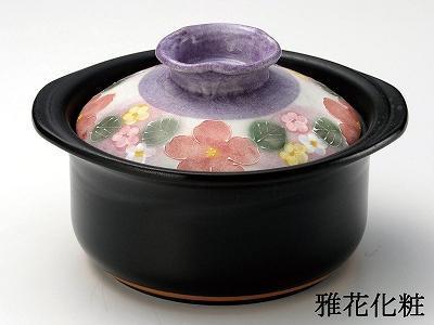 - 萬古焼 2合炊きIHご飯鍋 土鍋 IH専用 雅花化粧 15194