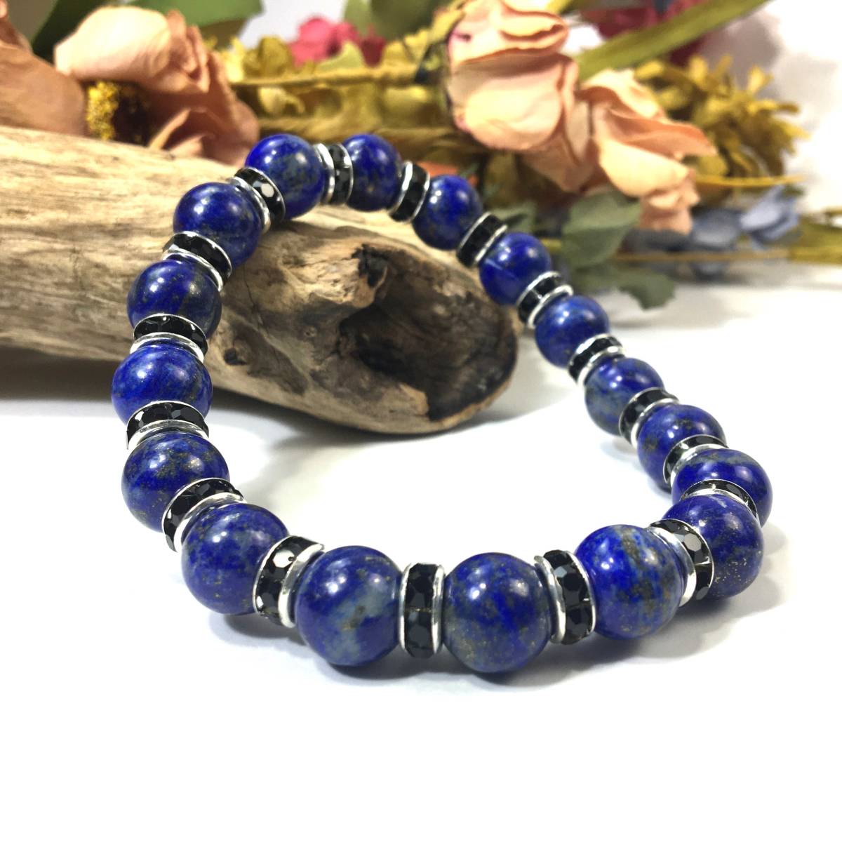 > ラピスラズリ パワーストーン ブレスレット 10mm 天然石ブレス (ブラック) 数珠ブレス メンズ・レディース 男性 女性 幸運 幸せ