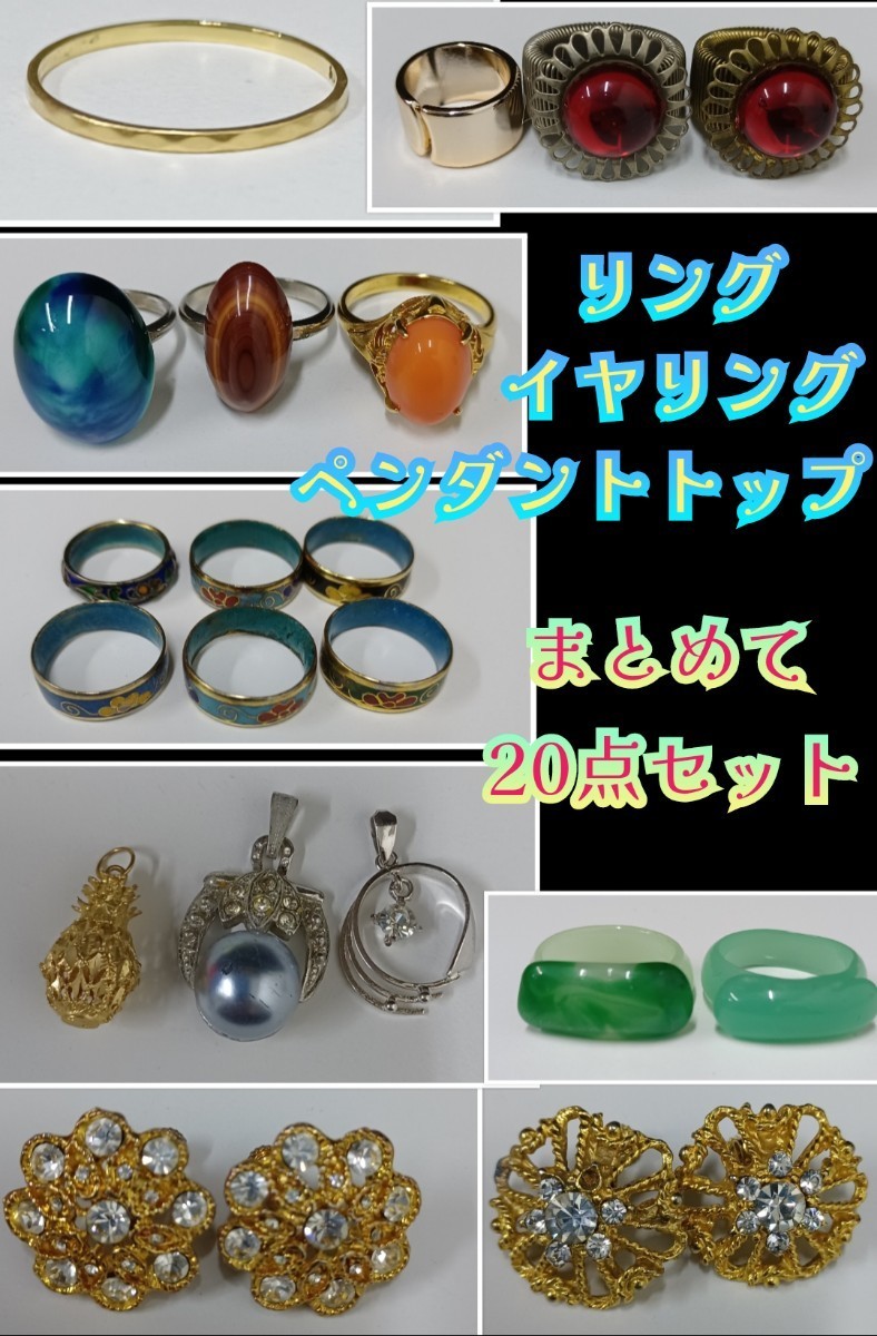 - 岩②)リング イヤリング ペンダントトップ まとめて20点セット アクセサリー アンティーク ストーン シルバー ゴールド 230517(L-1-1)