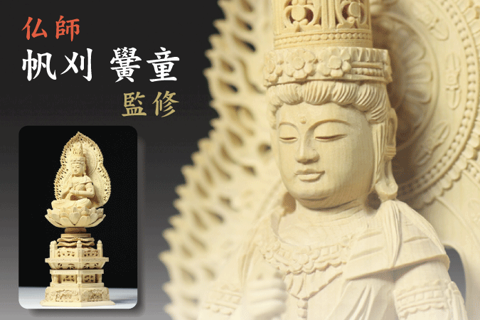 > 仏像 ■ 2.5寸 ■ 大日如来像 六角台座 総柘植 真言宗 ご本尊 ■ 仏具 (高さ29.0cm×幅13.6cm×奥行き9.8cm)