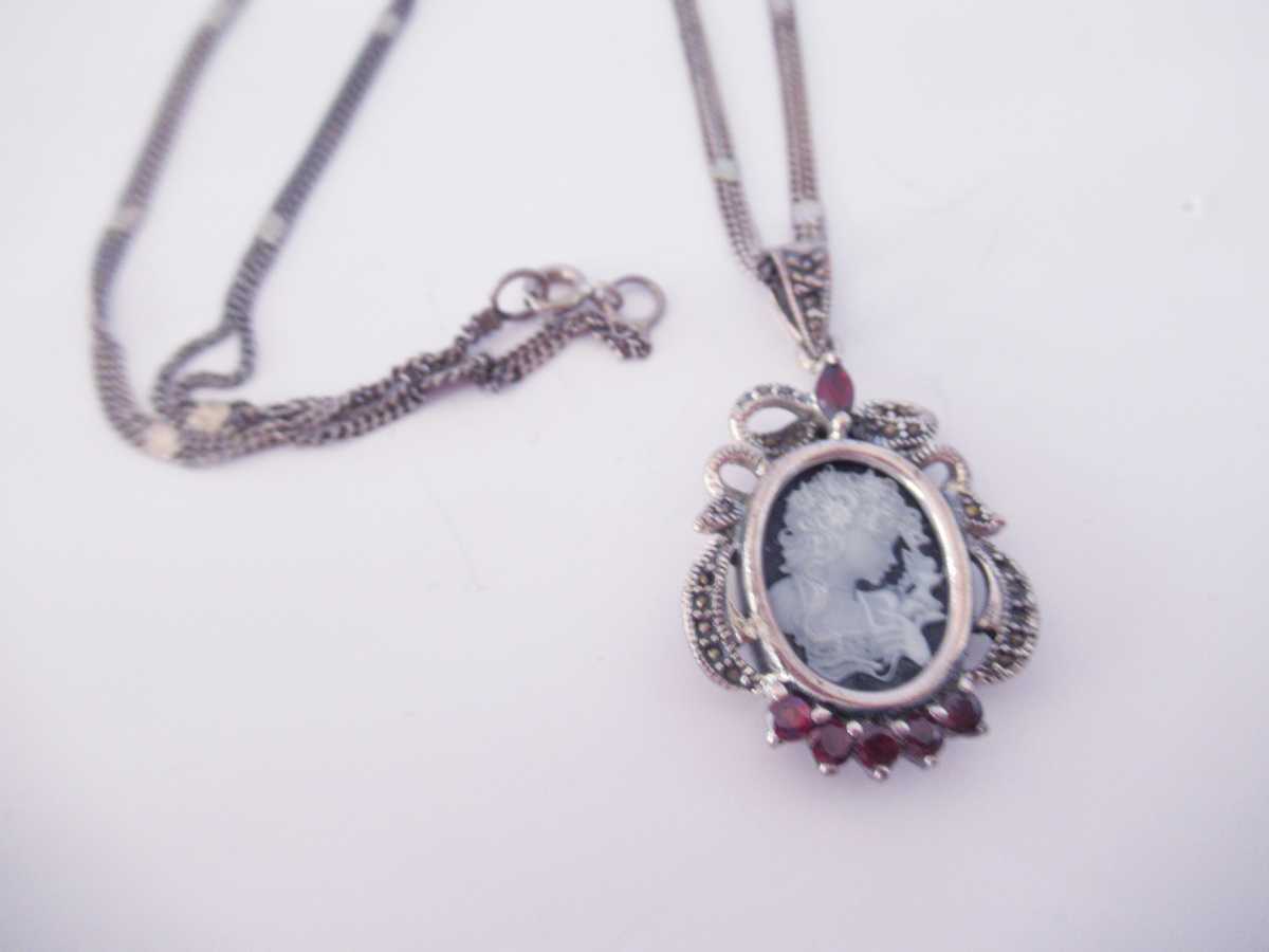 - 【アクセサリー】ストーンカメオのネックレス シルバー ガーネット マーカサイト 刻印あり シルバー925 ファッションアイテム ビンテージ