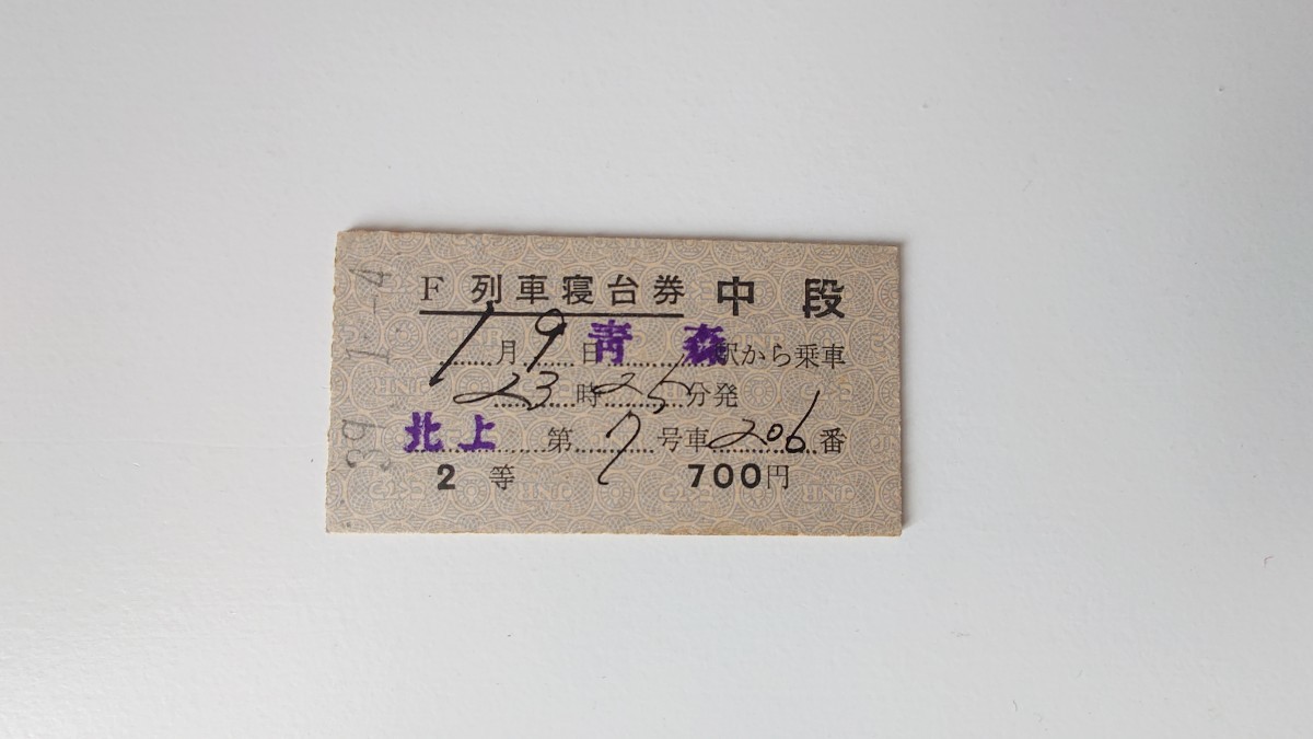 - ▽国鉄▽青森から北上列車寝台券 2等▽A型硬券昭和39年