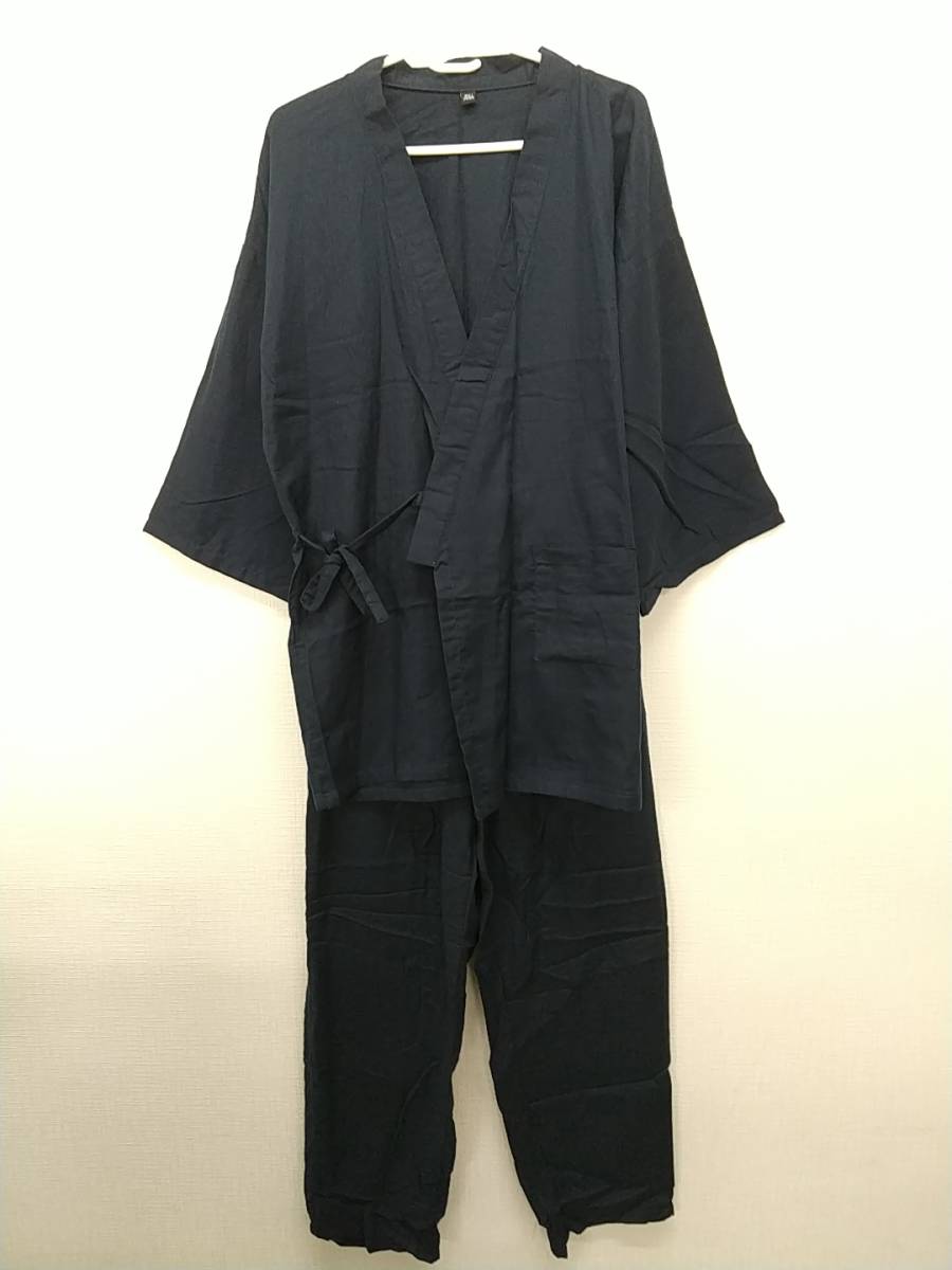 - 87-00461 【アウトレット品】ノーブランド品 甚平 7分袖 メンズ Lサイズ ネイビー