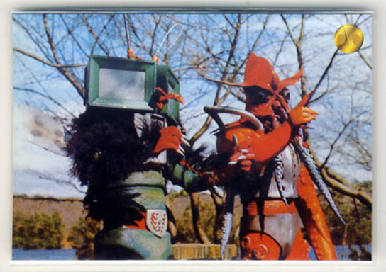 > ◆防水対策 厚紙補強 カルビー 仮面ライダーV3チップスカード(2004 復刻版) D22 悪だくみする二人の怪人 トレカ 即決