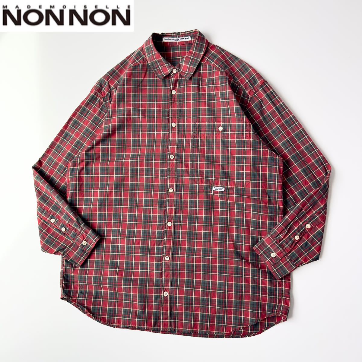 - 高級 Papas パパス Mademoiselle NON NON マドモアゼルノンノン タータンチェックシャツ レッド系 フリーサイズ ゆったり ブラウス