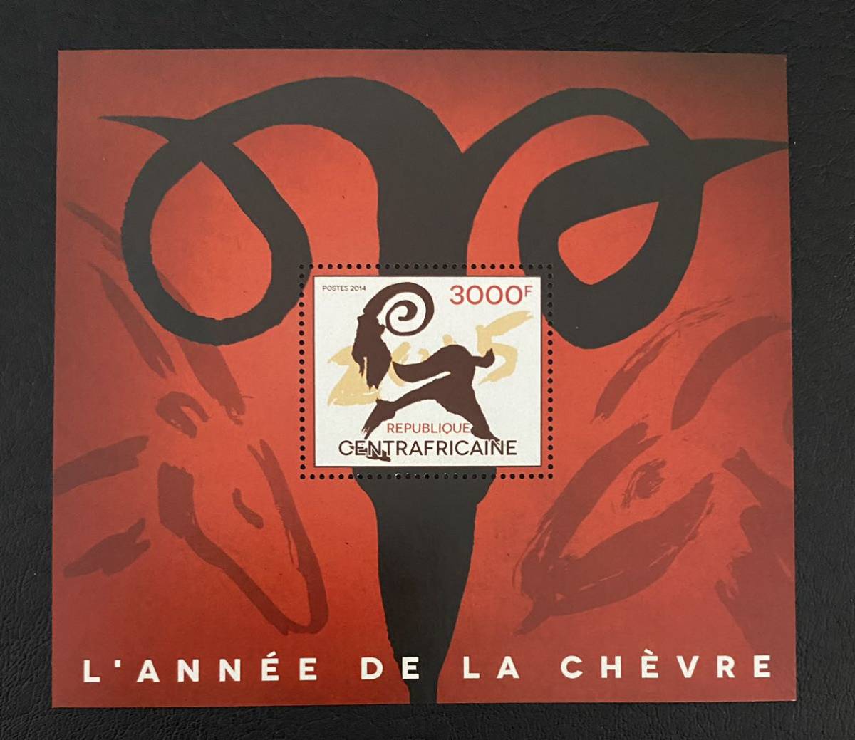 - 中央アフリカ 年賀 干支 羊 未 小型シート1種 未使用 NH