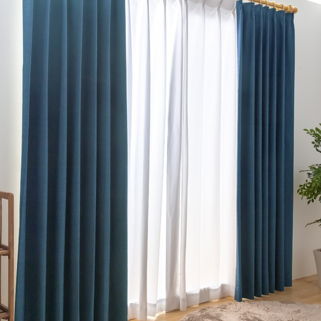 - カーテン 幅150cm×丈145cm2枚 ダークブルー 完全遮光 遮光1級 省エネ 遮音 遮熱 断熱 保温 日本製 形状記憶加工付 246サイズ展開