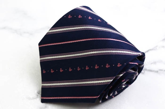 - ディズニー シルク ストライプ柄 ライン柄 小紋柄 ドット柄 ミッキーマウス TDL ブランド ネクタイ メンズ ネイビー Disney