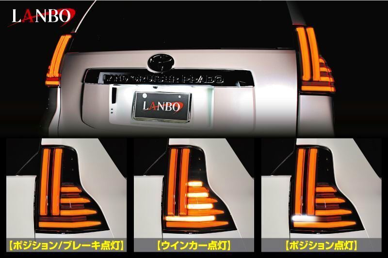 > 【M's】150 ランクル プラド J150/151W 後期 (2009.9-) LANBO シーケンシャル付 LEDテールランプ 左右 (スモーク) ランボ LTL-PRADO-SM