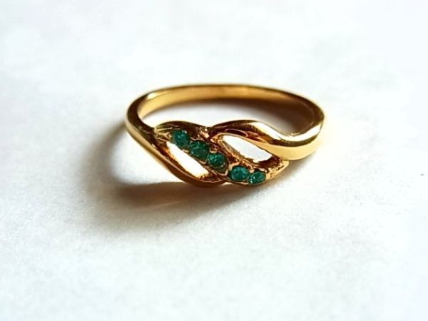 - 未使用品ゴールドカラー リング指輪9号ブルー水色系5粒キュービックジルコニア人工ダイヤモンドCZ男性メンズ女性レディ