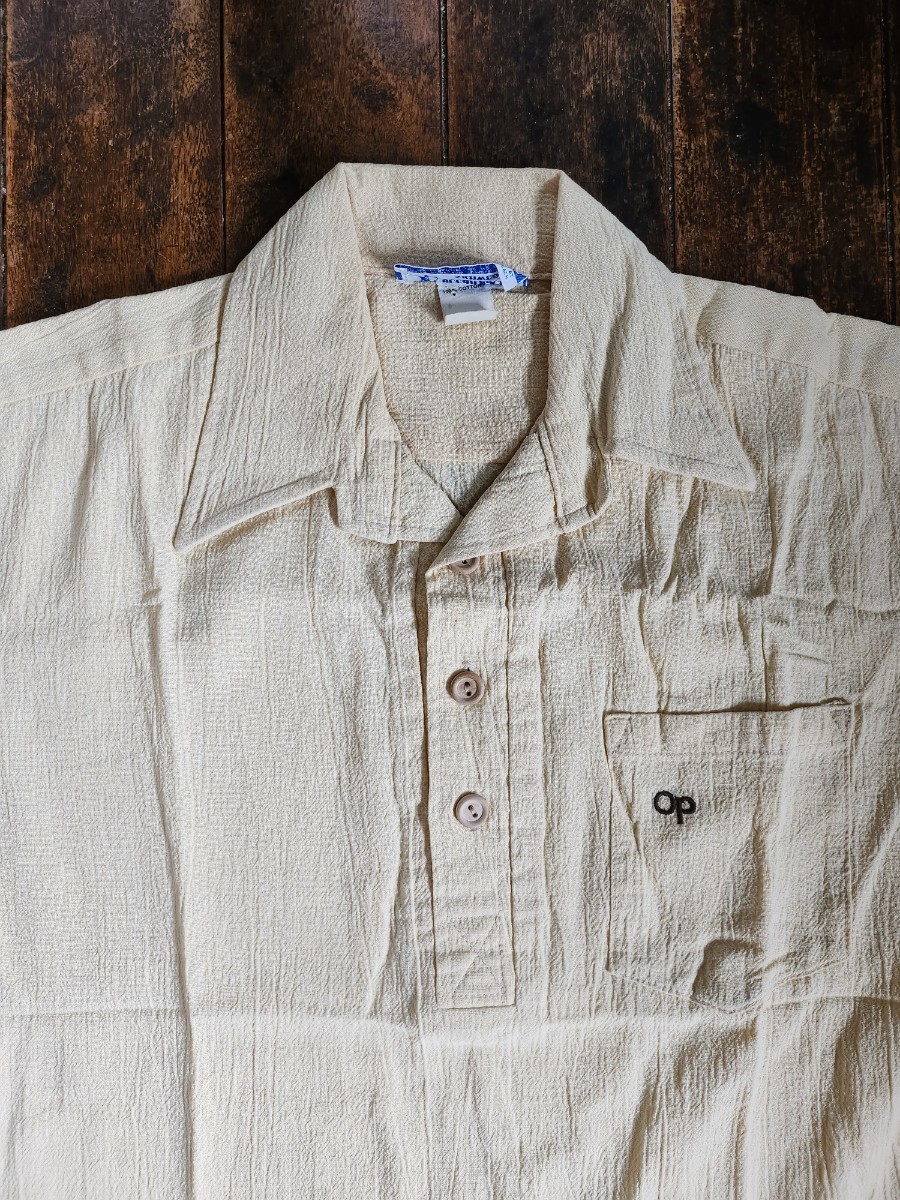 > アイボリー ★ オーシャンパシフィック 半袖 シャツ しわ 加工 ビンテージ ocean pacific ライトニングボルト ハンテン オールド サーフ