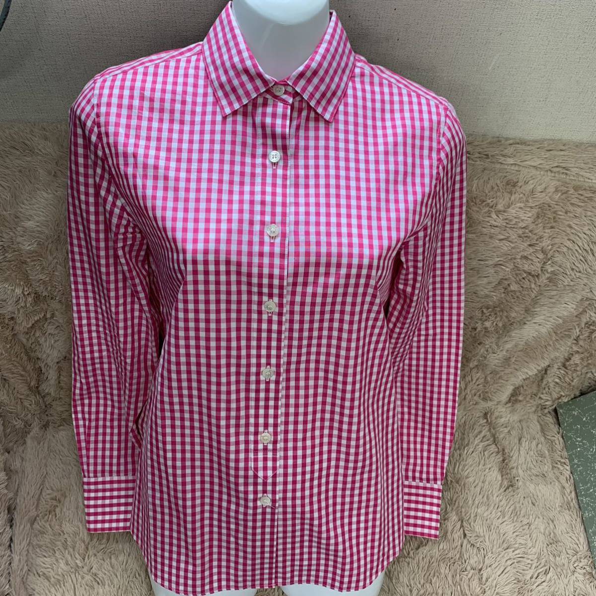 > ☆美品☆OLD ENGLAND 34 ピンクチェックシャツ 長袖シャツ ギンガムチェック 日本製(05055