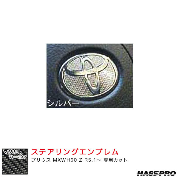 > マジカルカーボン トヨタ ステアリングエンブレム プリウス MXWH60 Z R5.1~ カーボンシート【シルバー】 ハセプロ CEST-5S