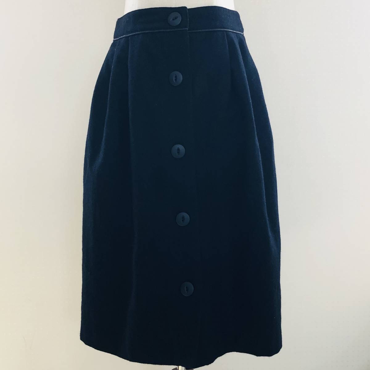 - AS0110 フェリシモ レディース 台形スカート 膝上丈 2つ穴ボタン 裏地あり ブラック 黒 無地 毛 オフィスカジュアル あたたか 上品 シック