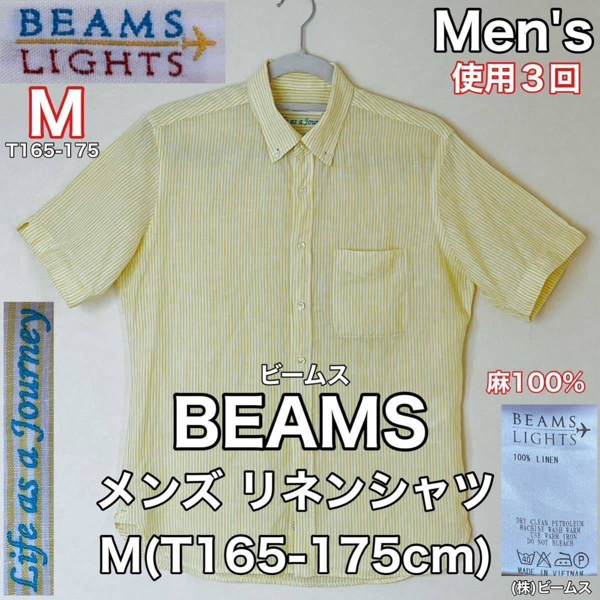 > 超美品 BEAMS(ビームス)メンズ リネン シャツ M(T165-175cm)使用3回 イエロー ホワイト ストライプ 麻 春夏秋 アウトドア (株)ビームス