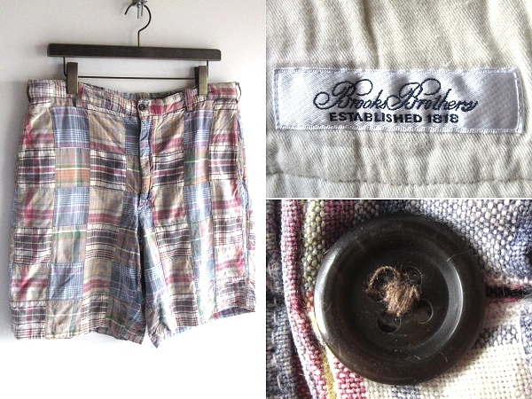 > 90sビンテージ BROOKS BROTHER ブルックスブラザーズ コットン マドラスチェック クレイジーパッチワーク ショートパンツ ショーツ W35