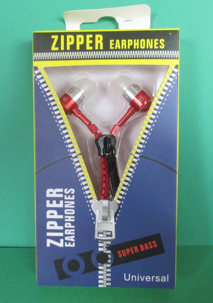- 〓同梱可★ジッパー型イヤホン★メタルレッド★1.2m・カナルタイプ・マイク機能・低音強化・絡まないケーブル★トーシン産業★送料180円〜
