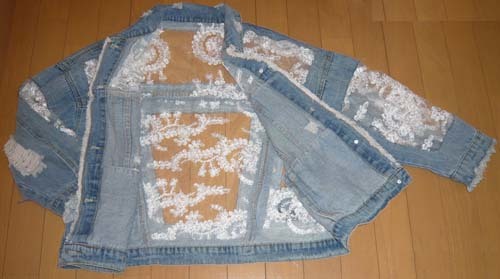 - Gジャン★ジージャン★デニム・ジャケット ◆お袖 シースルー 可愛いレース◆K threeケイスリー 【ユーズド】 M〜L ◆レディース
