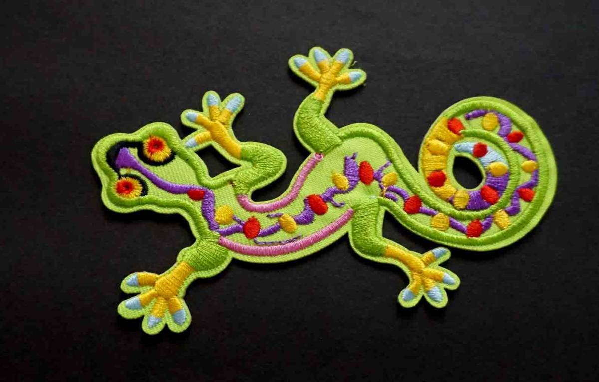 - 黄緑彩色蜥蜴■新品 ■『蜥蜴 トカゲ 知恵 予言』刺繍ワッペン■スカジャン ジャケット ミリタリー 大型二輪車 オートバイ バイク■DIY