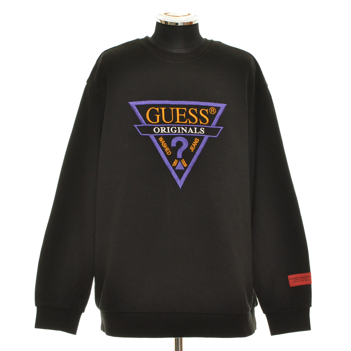 > ●433878 GUESS ORIGINALS ゲス オリジナルス ●スウェットトレーナー クルーネック トライアングルロゴ刺繍 サイズL メンズ ブラック