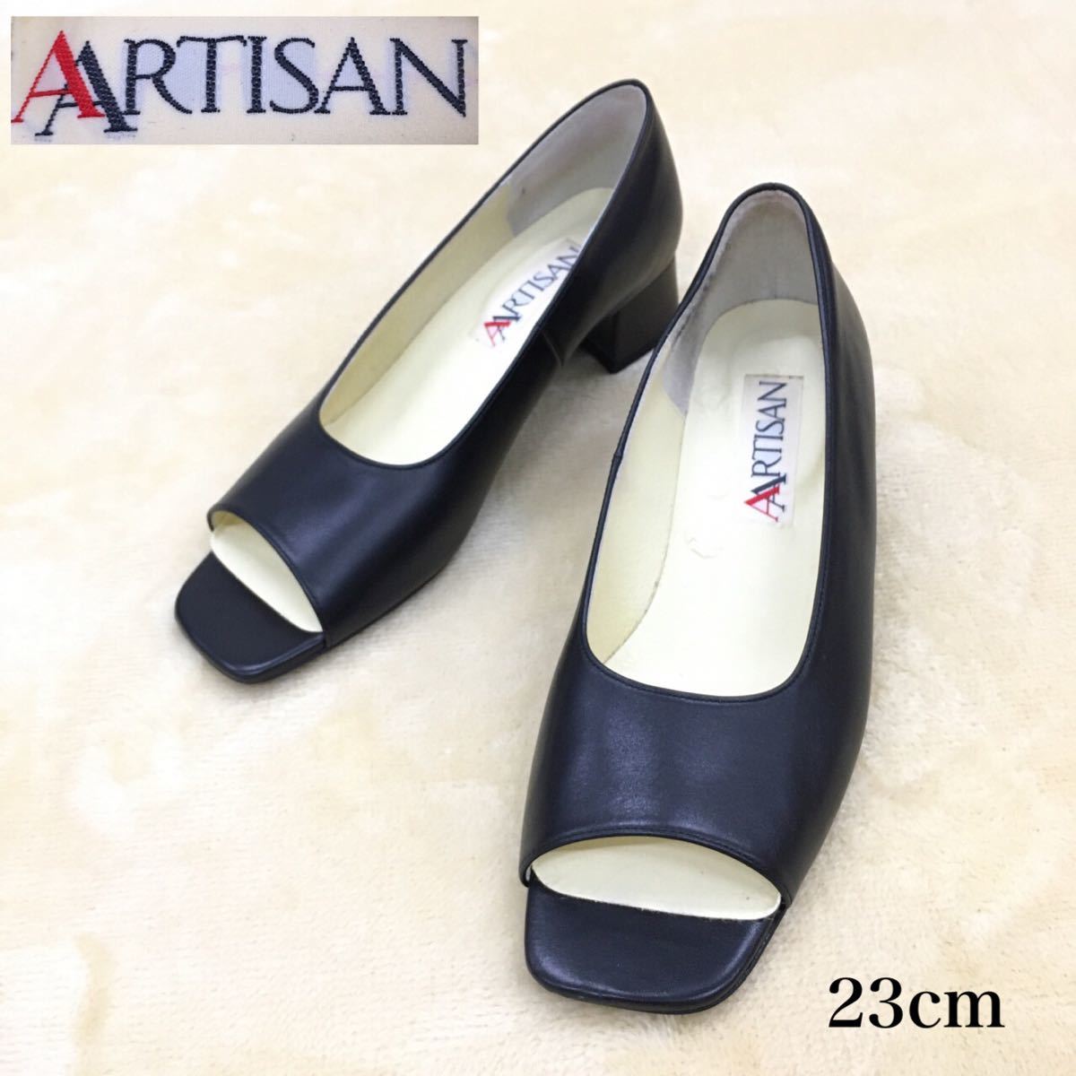 - ARTISAN アルチザン パンプス オープントゥ 革靴 レザー チャンキーヒール レディース サイズ23cm 日本製