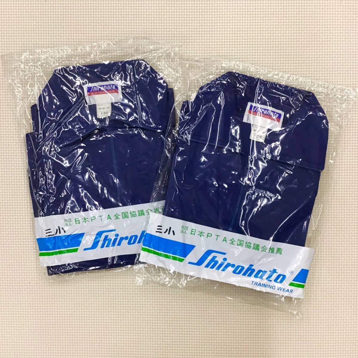 > (M)309 新品【Shirohato】シロハト トレーニングシャツ サイズ 130 2枚組/レーヨン/無地/長袖/紺/襟ファスナー/体操着/児童/小学生/日本製