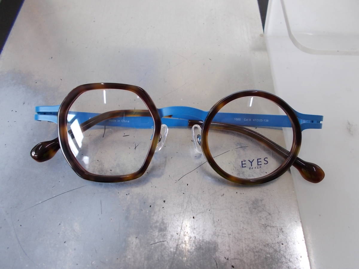 - E'YES 眼鏡フレーム 1000-8 お洒落 セル×メタル コンビフレーム 奇抜な 左右非対称 アシンメトリー デザイン 丸×多角形(七角形 ボストン)