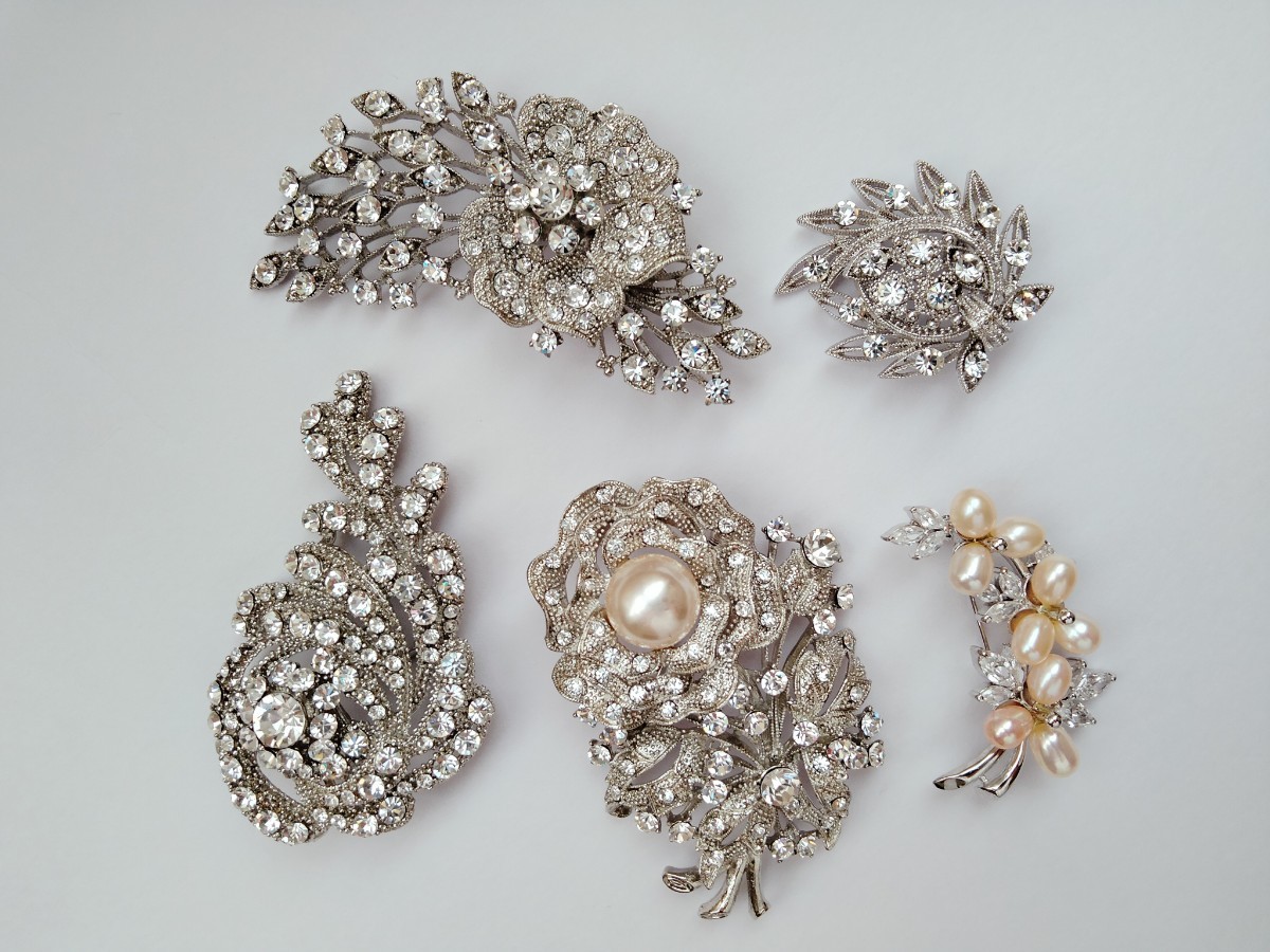 > ブローチ*まとめて*淡水パール*ジルコニア*結婚式*パーティー*キラキラ*フラワーモチーフ*アクセサリー*卒業卒園*入学入園*未使用に近い
