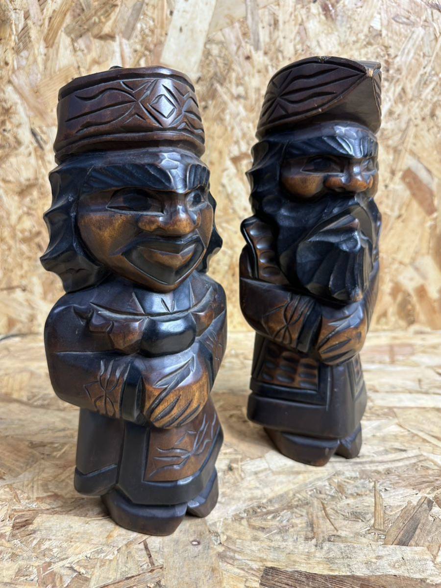- アイヌ民族 木彫り象 ニポポ人形 ペア 置物
