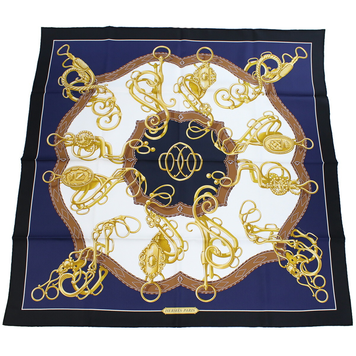 > エルメス HERMES レディース-スカーフ ブランド カレ CARRE TWILL 003777S 40 LIFT PROFILE RM-NOIR-MARINE-BLANC ブラック マルチカラー