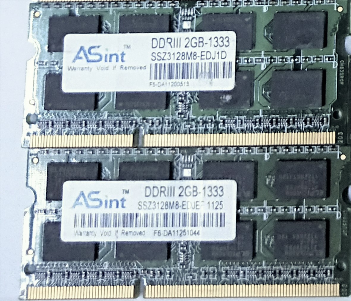 - 【中古パーツ】PC3 ノートパソコン用 DDR3 メモリ ASINT DDRIII 2GB-1333 2GBx2枚 計4GB 送料無料(在庫10枚)■N(174)