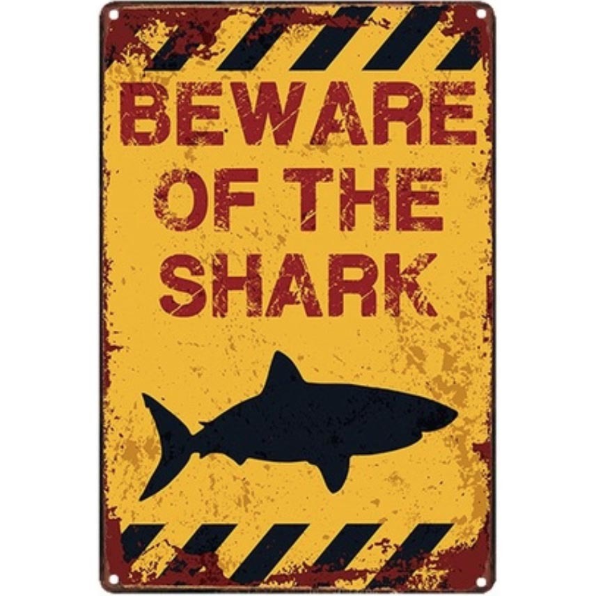 > A475 メタル サイン 金属 製 ブリキ 看板 プレート パネル 店 警告 注意 危険 動物 ペット 魚 SHARK サメ 鮫 釣り【R】
