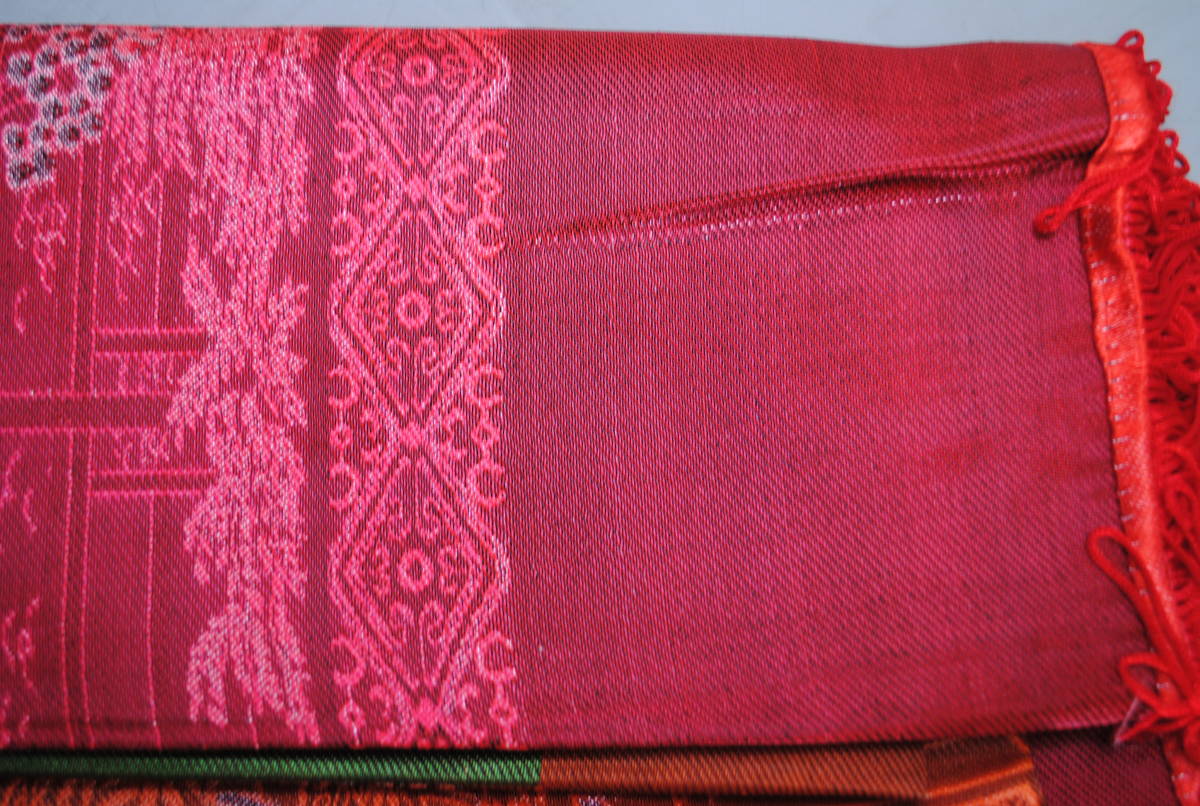 - ね530.テーブルクロス マルチカバー 195×140cm 唐子柄 風景 中国 フリンジ付き 光沢あり 赤色