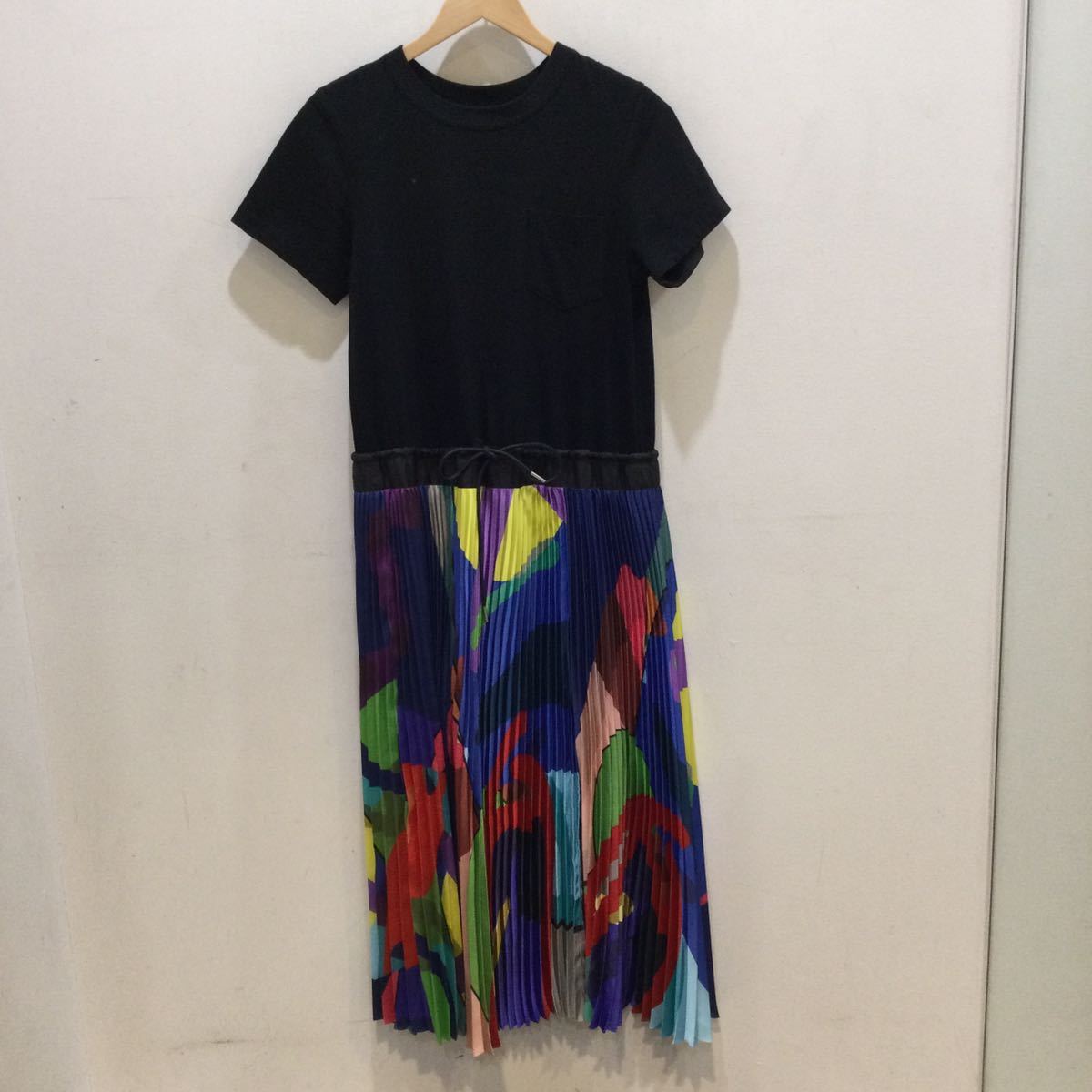 - sacai サカイ ワンピース 半袖ワンピース ドッキング プリーツ マルチカラー サイズ1 617130