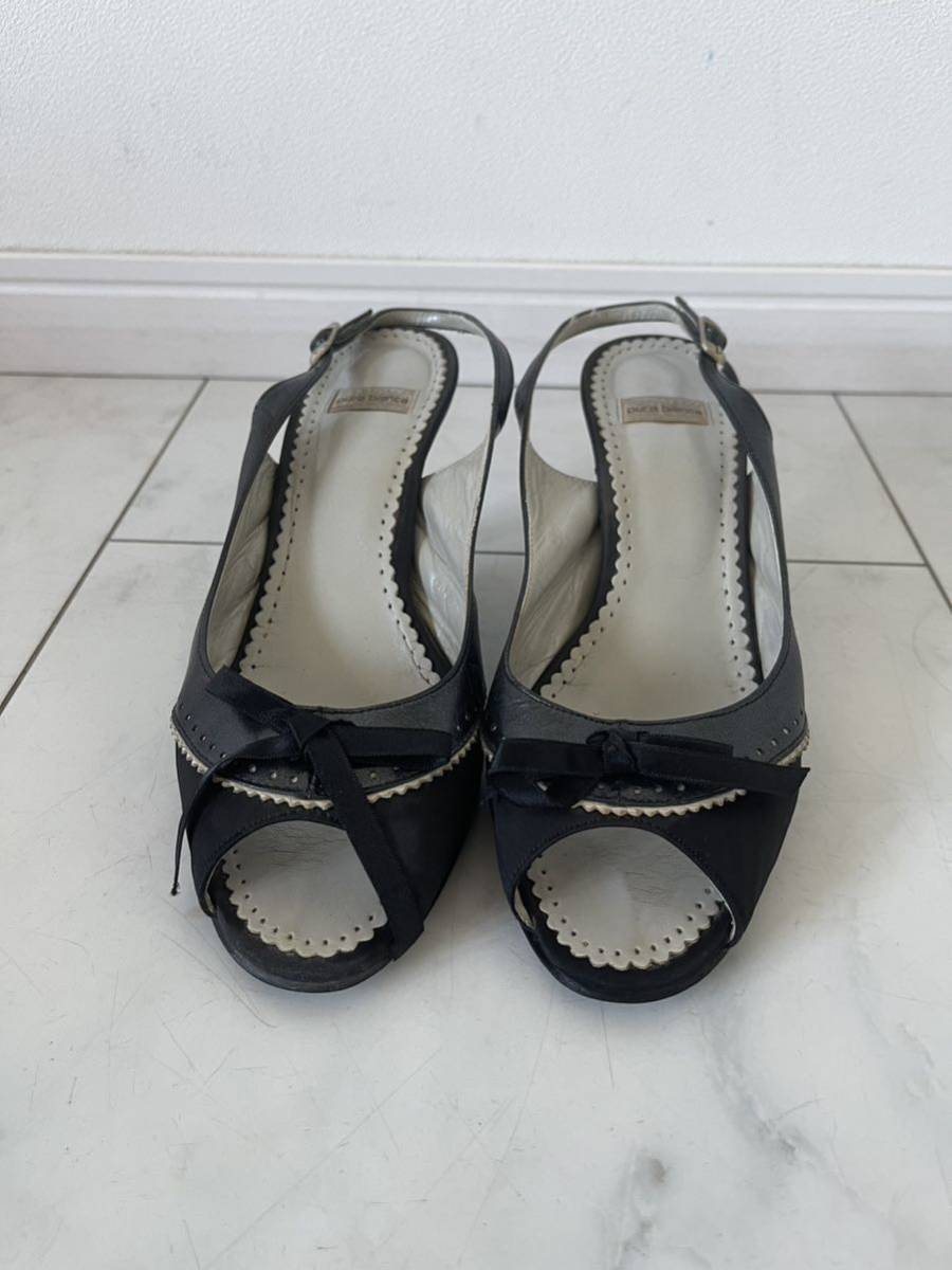 - プーラビアンカ purabianca リボン サンダル 23・5 黒