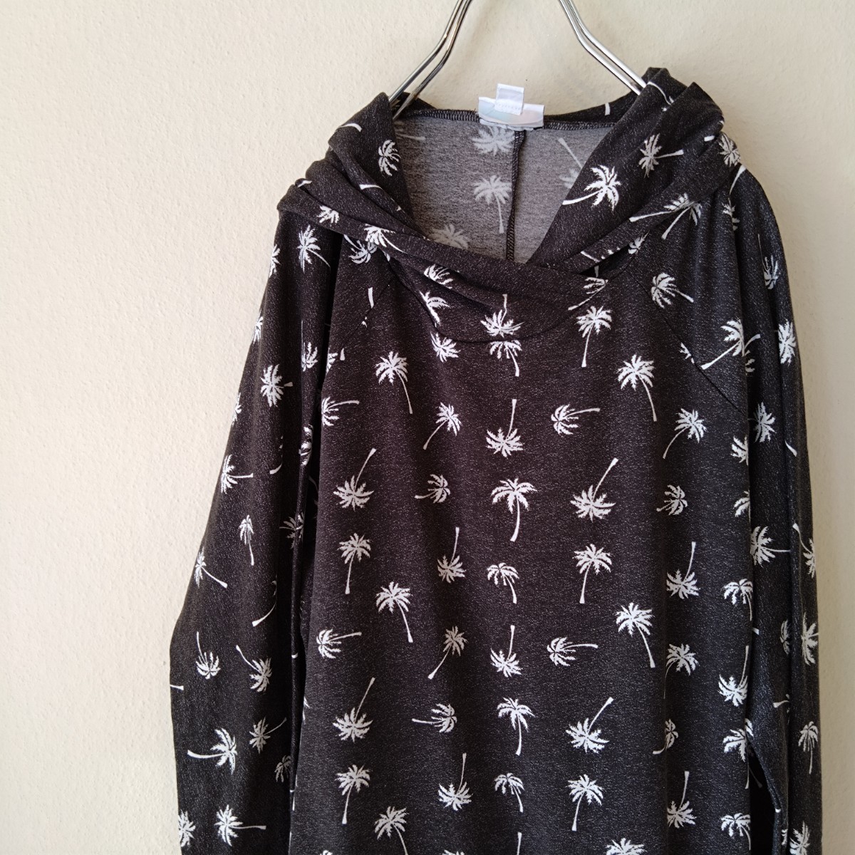 - lularoe プルオーバーパーカー ヤシの木柄 ブラック /Y2053