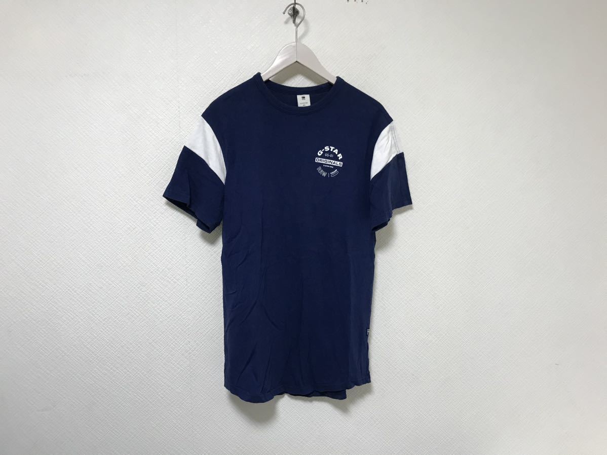 > 本物ジースターロウGSTAR RAWコットンプリント半袖TシャツメンズサーフアメカジミリタリービジネススーツストリートスケーターXS青ブルー