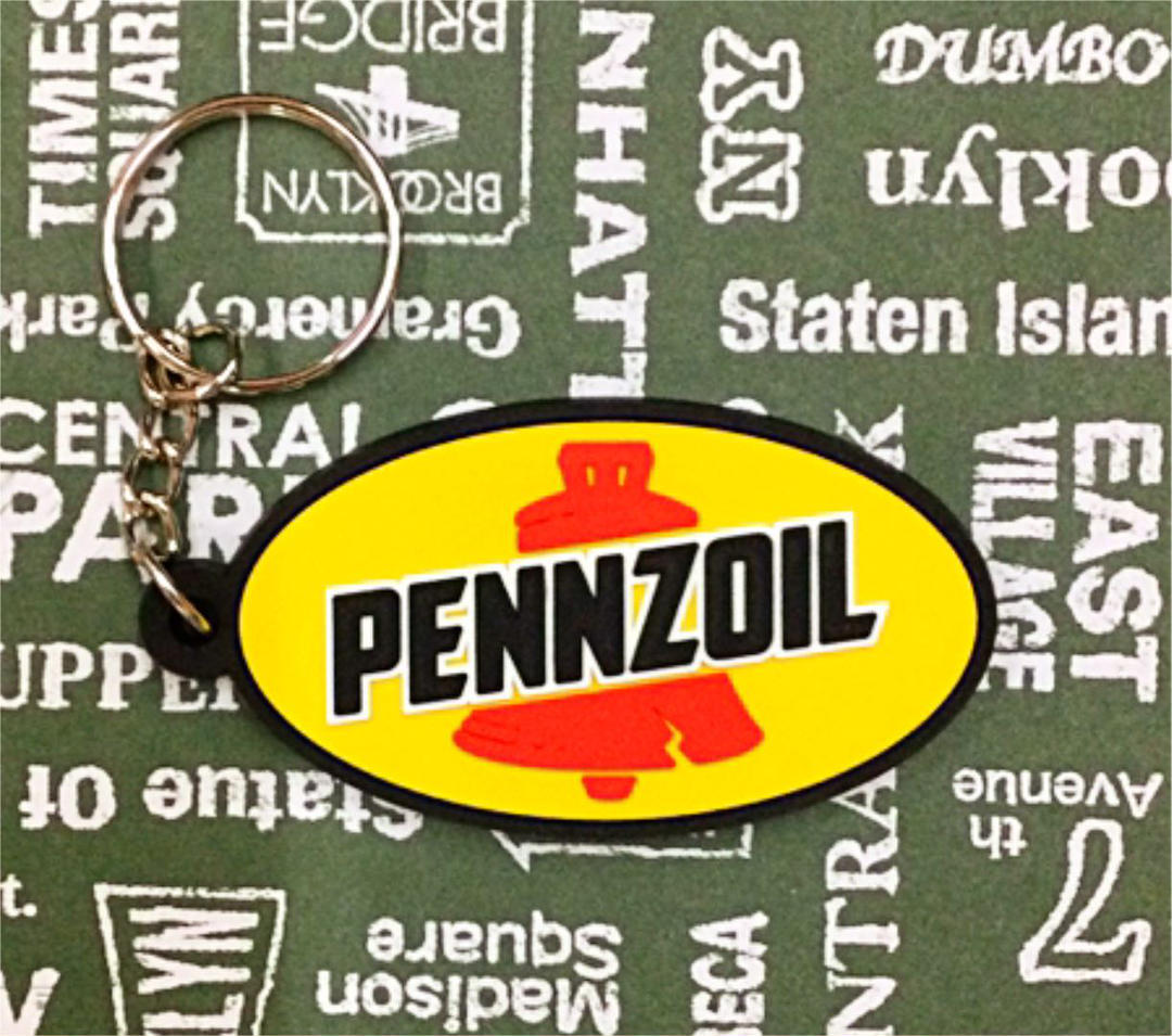 > ラバーキーリング/PENNZOIL ペンズオイル ペンゾイル キーホルダー アメリカン雑貨 車 バイク カギ アクセサリー 小物 イエロー